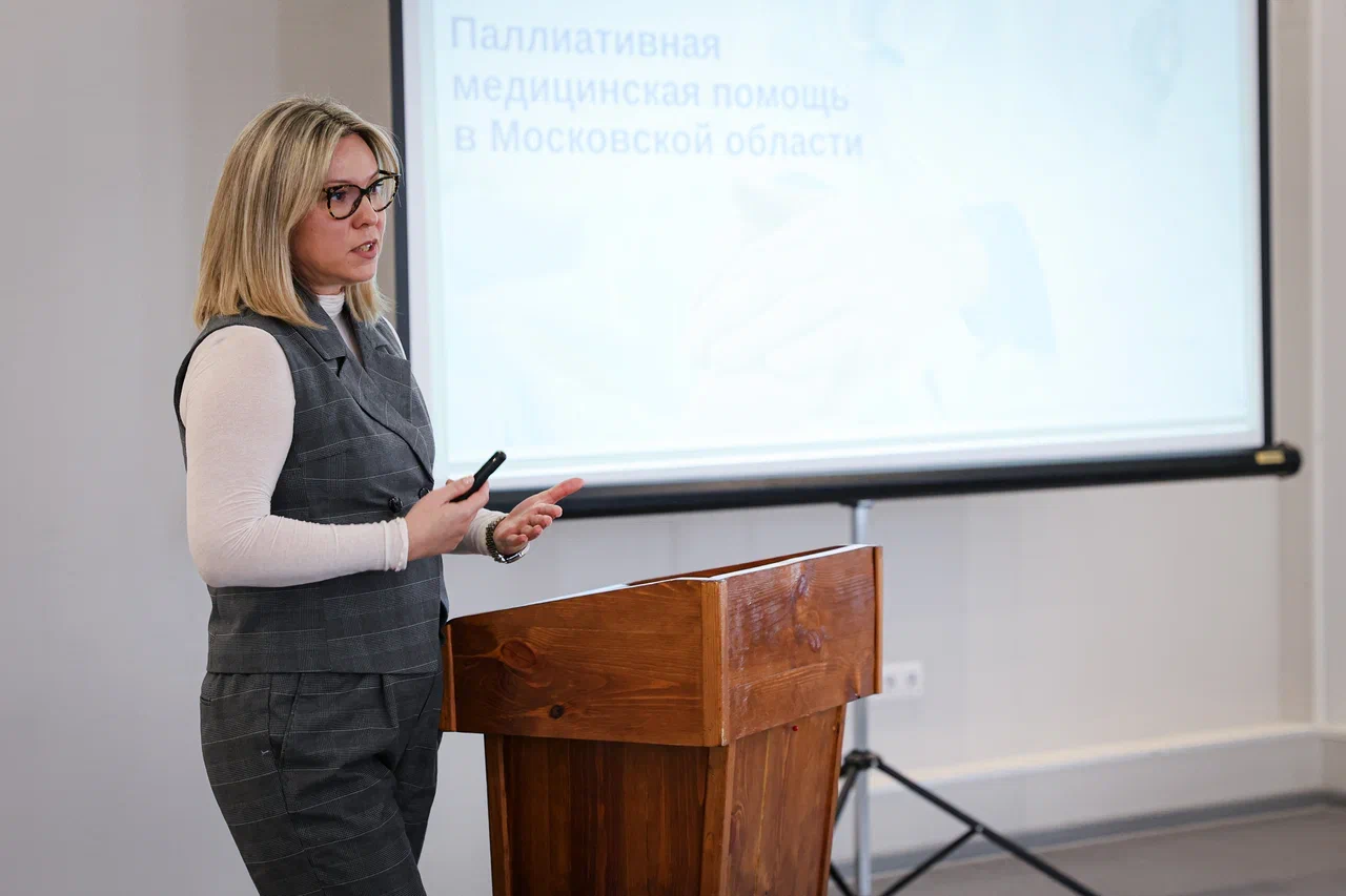 Ирина Ушканенко выступила с докладом о развитии системы паллиативной медицинской помощи в Московской области, познакомила участников дискуссии с деятельностью Координационного центра, рассказала
